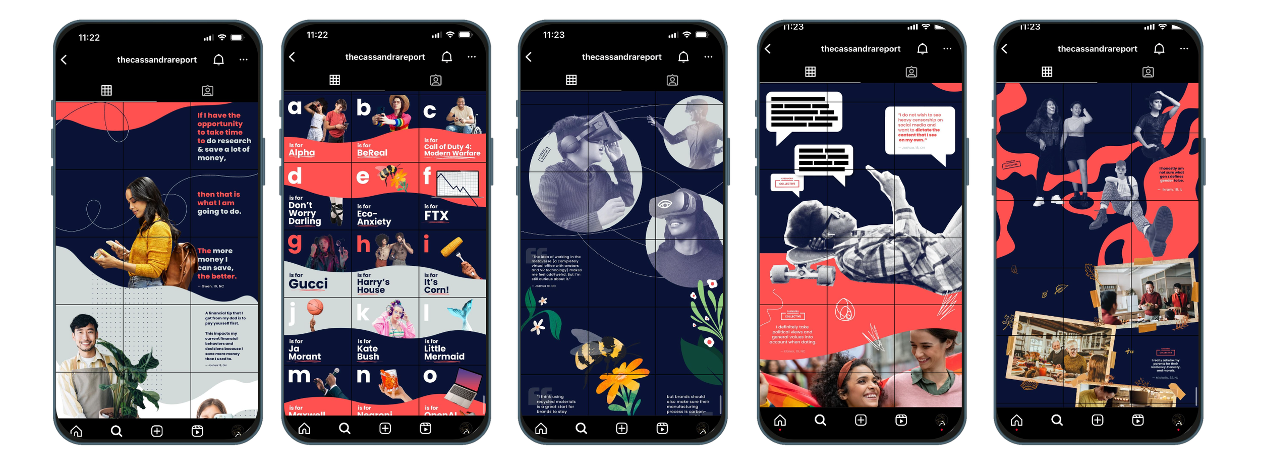 At Cassandra, I managed all things design related at the company— from the monthly qualitative and quantitative research driven Cassandra Report, the Cassandra Daily newsletter, our award-winning Instagram page, pitch and proposal decks, infographics, custom research presentations for Fortune 500 clients, and various other social media and marketing collateral.